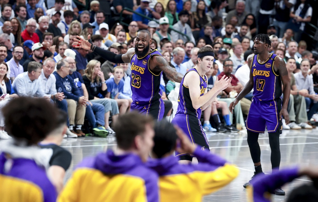 雷迪克的反制方法是摆八村塁+电风扇+东詹里招牌五小阵容,老詹在下半场开始接管:他上半场8分,基本把舞台都让给了重返达拉斯的小兄弟,主打无球;下半场独得19分,把加福德换防锤得没脾气,末节13分收比赛。