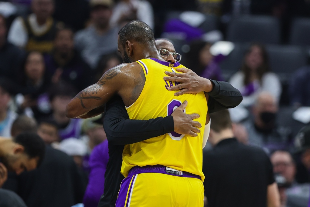 你曾与许多伟大的球员并肩作战,但从未与勒布朗-詹姆斯同队。在比赛中,你有机会和他交谈过吗?