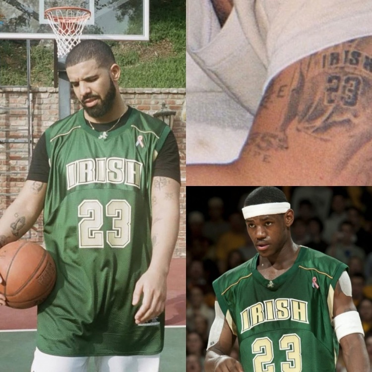 Drake左臂上原本文的是勒布朗“爱尔兰战士队”的球衣,而现在,他将其换成了谢伊-吉尔杰斯-亚历山大的球衣。这位多伦多老乡刚刚帮助雷霆赢得了总冠军,并且还出演了Drake歌曲《NOKIA》的MV。