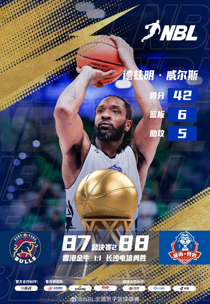 长沙勇胜:威尔斯42分6板5助2断、达卡里-约翰逊16分13板2助3帽、黎璋霖12分7板、杨越8分