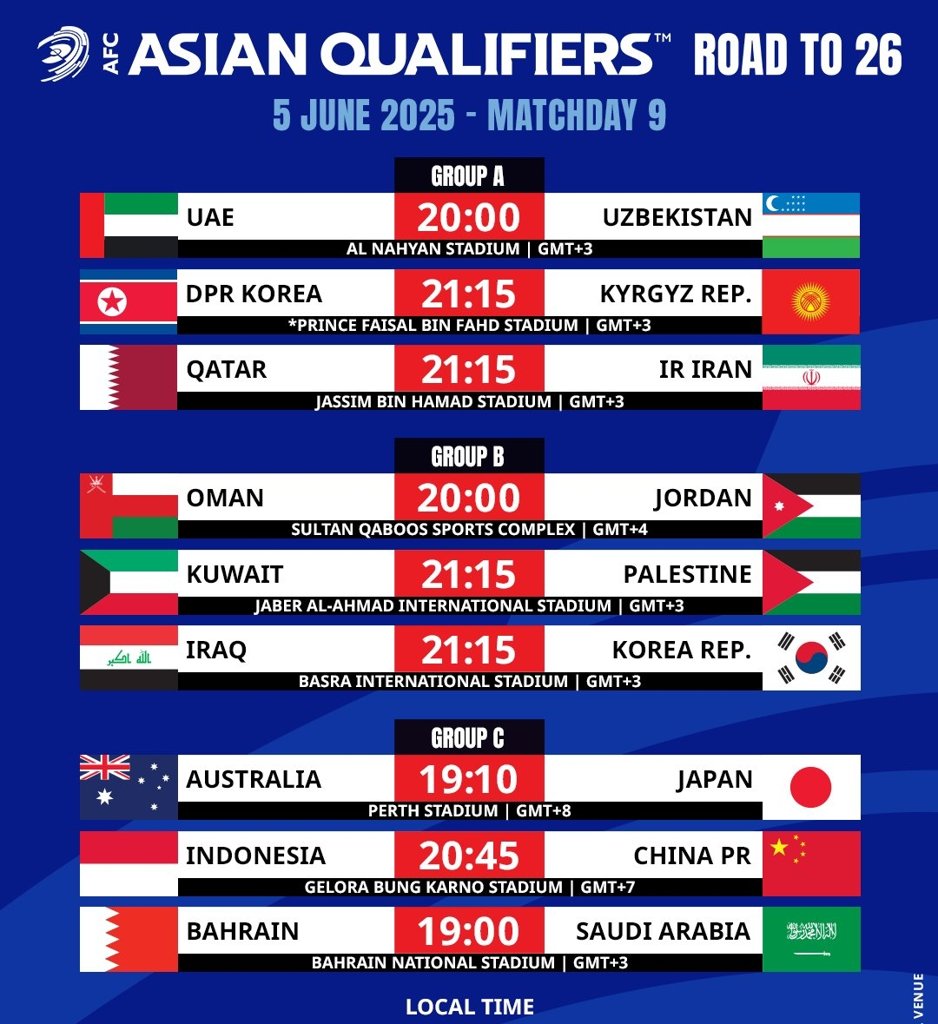 06月05日讯 今日世预赛亚洲区18强赛倒数第二轮开战,亚洲6个直通世界杯的席位可能在本轮全部确定,目前日本和伊朗已经锁定了晋级世界杯正赛。