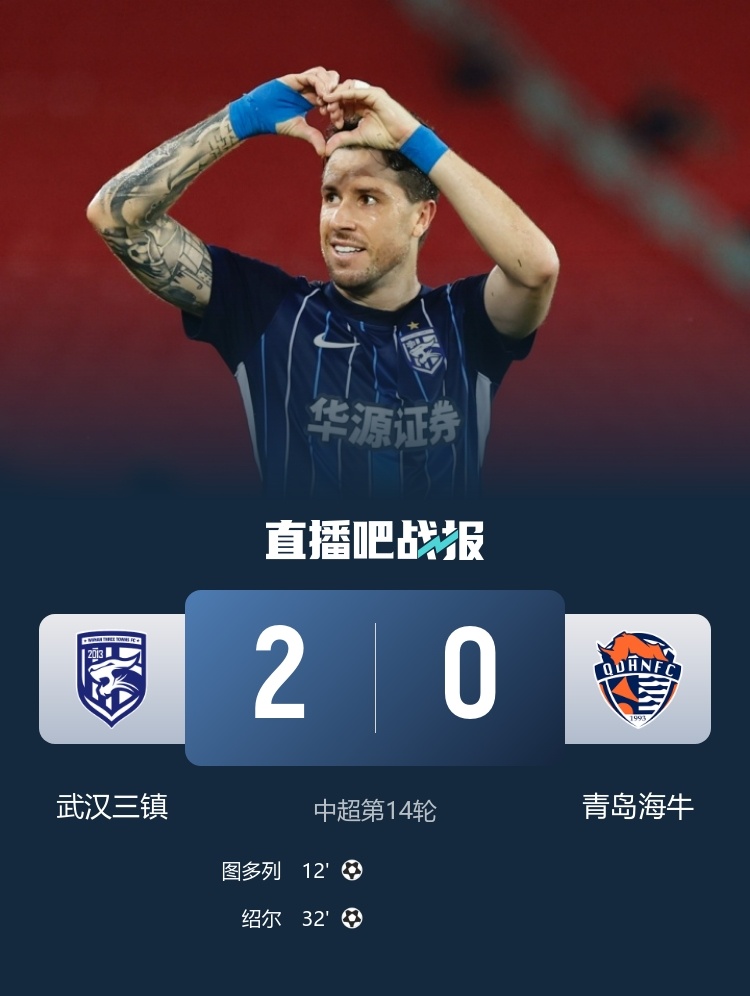 第12分钟,帕拉西奥斯左边路突破下底传中,禁区内图多列从容停球弹射破门!武汉三镇1-0领先青岛海牛↓