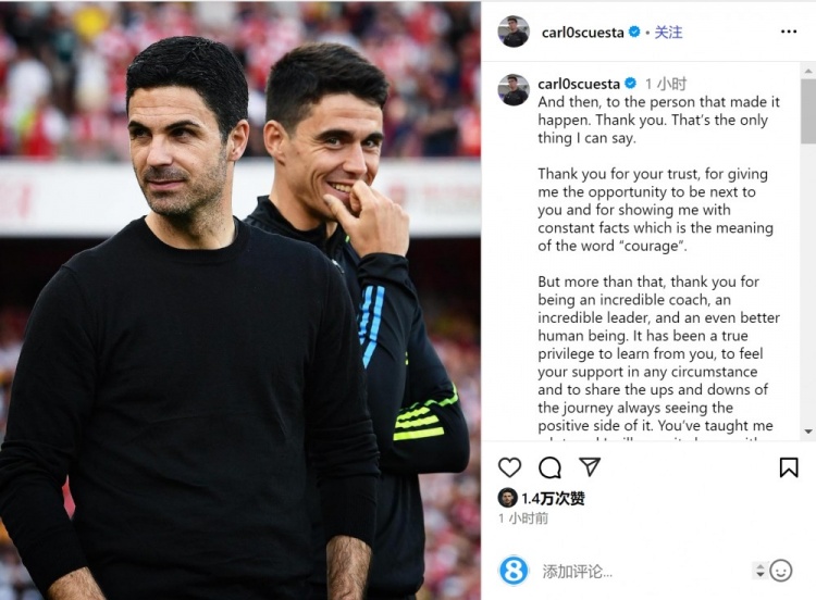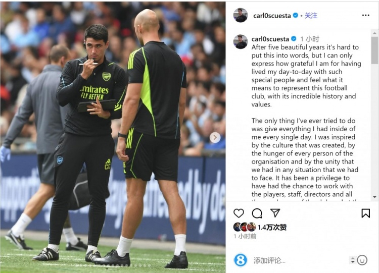 6月19日讯 阿森纳助教卡洛斯-奎斯塔离开俱乐部,据悉他将执教帕尔马,奎斯塔在社交媒体上发文告别,对俱乐部和阿尔特塔表示感谢。