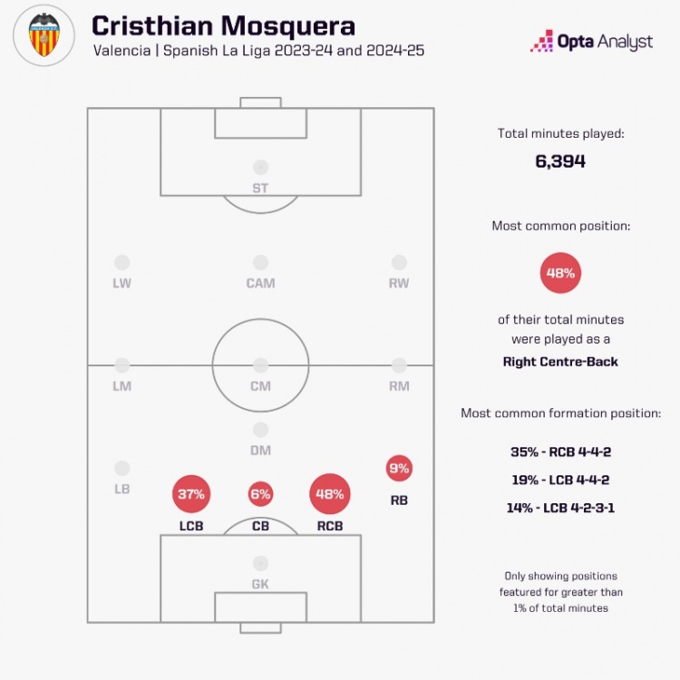 7月16日讯 根据媒体的报道,瓦伦西亚中卫莫斯克拉将加盟阿森纳,Opta统计了莫斯克拉的数据。